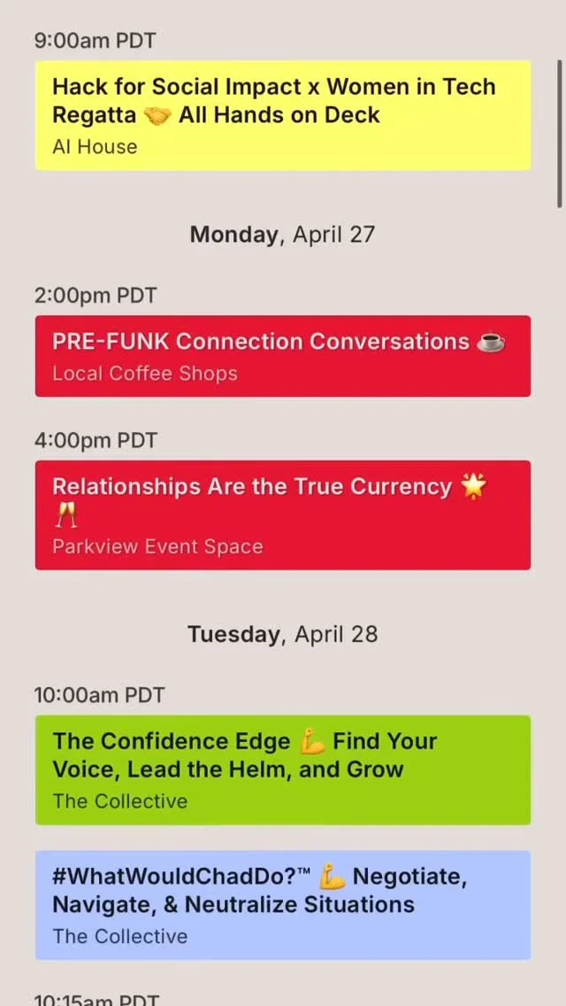 Sessions are grouped thematically -aka ports. The Regatta is designed to give attendees access to mentors, peers, resources, job opportunities and to the power of community.